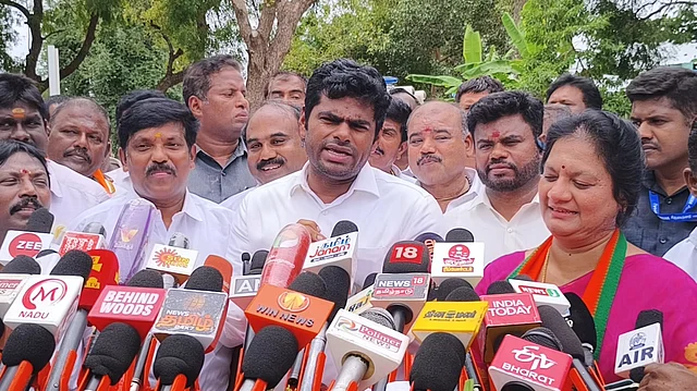 தென்காசி மாவட்டம், புளியங்குடி பகுதியில் பாஜக சார்பில் மாபெரும் பொதுக்கூட்டம் இன்று மாலை நடைபெற உள்ளது. இதில் கலந்து கொள்வதற்காக தமிழக பாஜக தலைவர் அண்ணாமலை சென்னையிலிருந்து விமான மூலம் தூத்துக்குடி வாகைகுளம் விமான நிலையம் வருகை தந்தார்.
