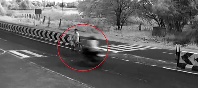 திருப்பூர் மாவட்டம் பல்லடம் அருகே சைக்கிளில் சாலையை கடக்க முயன்றவர் மீது இருசக்கர வாகனம் ஒன்று பலமாக மோதும் பதைபதைக்க வைக்கும் சிசிடிவி காட்சி வெளியாகியுள்ளது.