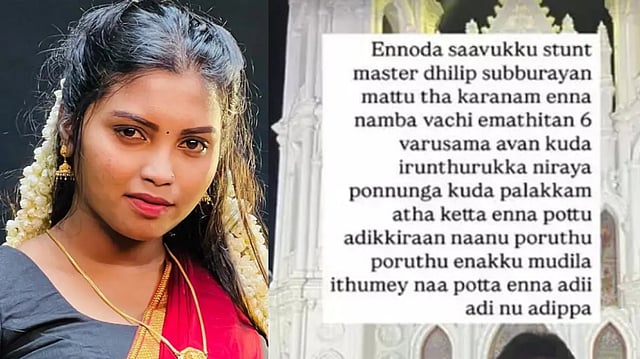 இந்நிலையில் இவர் “ என் சாவுக்கு காரணம் திலீப் சுப்பராயன் தான் என இன்ஸ்டாகிராமில் ஸ்டோரி வைத்து விட்டு, அளவு அதிகமான ஊட்டச்சத்து மாத்திரைகளை உட்கொண்டதாக் தெரிகிறது.