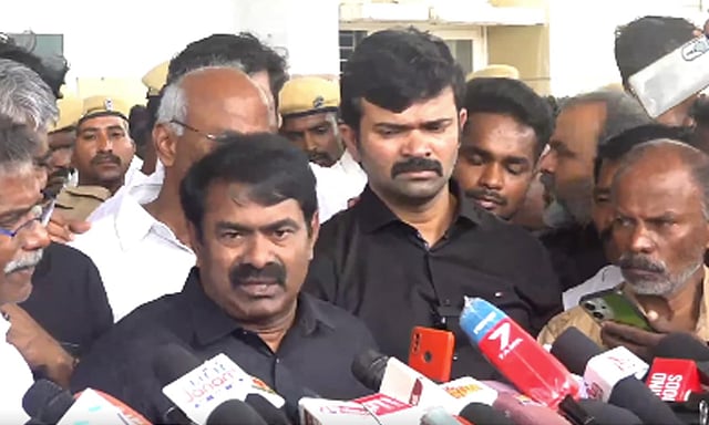 இந்த சூழலில் கரூரில் பாதிக்கப்பட்ட மக்களையும் அவர்களின் குடும்பத்தினரையும் சந்தித்து ஆறுதல் தெரிவித்த பின்னர் நாம் தமிழர் கட்சி ஒருங்கிணைப்பாளர் சீமான் சென்னை விமான நிலையம் வந்தார். அதனைத் தொடர்ந்து செய்தியாளர்களை சந்தித்து பேசியவர்,