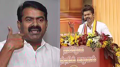 தமிழ்நாடு அரசியலில், அண்மைக் காலமாக நடிகர் விஜய் மற்றும் நாம் தமிழர் கட்சியின் தலைமை ஒருங்கிணைப்பாளர் சீமான் இடையேயான அரசியல் மோதல் பேசுபொருளாகியுள்ளது. விஜய், தனது கட்சியின் மாநாட்டில் பேசிய பேச்சுக்கு, சீமான் தனது வழக்கமான பாணியில் கிண்டலாகவும், கூர்மையாகவும் பதிலளித்துள்ளார். குறிப்பாக, விஜய் முதல்வரை 'அங்கிள்' என்று அழைத்ததும், அவரது ரசிகர்களை சீமான் மறைமுகமாக 'அணில்' என்று குறிப்பிட்டதும் அரசியல் வட்டாரத்தில் பெரும் பரபரப்பை ஏற்படுத்தியுள்ளது.