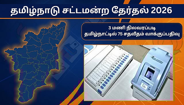 தமிழக சட்டமன்றப் பொதுத்தேர்தல் 2026-க்கான வாக்குப்பதிவு இன்று காலை முதலே மின்னல் வேகத்தில் நடைபெற்று வரும் நிலையில், மதியம் 3 மணி நிலவரப்படி மாநிலம் முழுவதும் ஒரு மிகப்பெரிய 'ஜனநாயகப் புரட்சி' அரங்கேறி வருகிறது. கொளுத்தும் வெயிலையும் பொருட்படுத்தாமல் மக்கள் நீண்ட வரிசையில் நின்று தங்களது வாக்குகளைப் பதிவு செய்து வருவதால், பல மாவட்டங்களில் 3 மணிக்கே 75 சதவீதத்தைத் தாண்டி வாக்குப்பதிவு சாதனை படைத்துள்ளது. குறிப்பாகக் கொங்கு மண்டலம் மற்றும் வட மாவட்டங்களில் முன்னெப்போதும் இல்லாத வகையில் மக்கள் ஆர்வத்துடன் திரண்டு வருவது, இந்தத் தேர்தலில் ஒரு மிகப்பெரிய அரசியல் மாற்றத்திற்கான அறிகுறியாகவே பார்க்கப்படுகிறது.