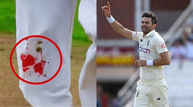 நேற்றைய போட்டியில் ஜேம்ஸ் ஆண்டர்சன் வீசிய 42வது ஓவரின் போது அவரது முழங்கால் பகுதியில் இருந்து ரத்தம் கொட்டியது. காலில் ரத்தம் அதிகமாக வந்ததால், ஜேம்ஸ் ஆண்டர்சன் அந்த ஓவரை பாதியிலேயே நிறுத்திவிட்டு, முதலுதவி எடுக்க செல்வார் என எதிர்பார்க்கப்பட்டது. இதனையே இங்கிலாந்து வீரர்களும் ஆண்டவனிடம் வலியுறுத்தினார். ஆனால் ரத்தம் சொட்டுவதை கண்டு கொள்ளாமல் அந்த ஓவரை முழுமையாக முடித்து விட்டு சென்றார். ஆண்டர்சன் காலில் ரத்தம் சொட்ட சொட்ட பந்துவீசிய வீடியோ மற்றும் புகைப்படங்கள் தற்போது சமூக வலைதளங்களில் வேகமாக பரவி வருகிறது.