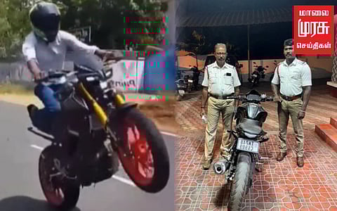 இந்த புகாரை பெற்றுக் கொண்ட போக்குவரத்து ஒழுங்கு பிரிவு போலீசார் அந்த இளைஞர் யார் எந்த ஊர் என்று விசாரித்தபொழுது, அவர் நாகர்கோவில் பகுதியை சேர்ந்த கல்லூரி மாணவன் விஷ்ணு என்பது தெரியவந்தது. பின்னர் அந்த விலை உயர்ந்த மோட்டார் சைக்கிளை போலீசார் பறிமுதல் செய்தனர்.