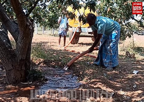 இதனால் விவசாயிகள் மா பிஞ்சுகளை காக்க ஒரு டிராக்டர் தண்ணீர் 500 ரூபாய்க்கு விலை கொடுத்து வாங்கி மாமரங்களுக்கு தண்ணீர் பாய்ச்சி மா மரங்களை காத்து விளைச்சலை பெருக்க நடவடிக்கை மேற்கொண்டுள்ளனர்.