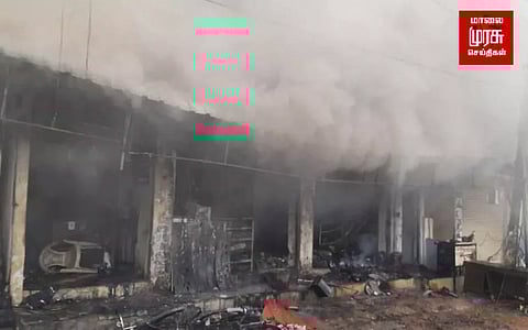 பணியில் இருந்த தொழிலாளர்கள் பலரும் அங்கிருந்து தப்பி ஓடி உயிர் பிழைத்தனர். மேலும் அவர்கள் கொடுத்த தகவலின் பெயரில் சம்பவ இடம் விரைந்து சென்ற நிலையை அலுவலர் முத்துக்குமாரசாமி தலைமையிலான தீயணைப்பு வீரர்கள் மற்றும் ஐந்துக்கும் மேற்பட்ட தனியார் தண்ணீர் லாரிகள் மூலமாக தண்ணீரை பீச்சி அடித்து தீயை அணைக்கும் பணியில் ஈடுபடுத்தப்பட்டு வருகின்றனர்.