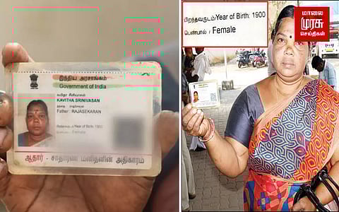ஆனால் கவிதாவினுடைய ஆதார் கார்டை அச்சிடும்போது பிறந்த வருடம் 1982-க்கு பதிலாக 1900 என பதிவாகி விட்டது. சுமார் 82 வருடங்களுக்கு முன் பிறந்தவர் என்ற ரீதியில் அளிக்கப்பட்ட இந்த ஆதார்கார்டின்படி தற்போது கவிதாவுக்கு 123 வயதாகிறது.