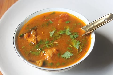 மிளகு, சீரகம், பூண்டு போன்றவற்றின் காரமும், கோழியின் சத்தும் சேர்ந்து கமகமவென மணக்க, இந்த ரசத்தை எப்படி எளிமையாகவும், சுவையாகவும் தயாரிப்பது என்று பார்க்கலாம்.