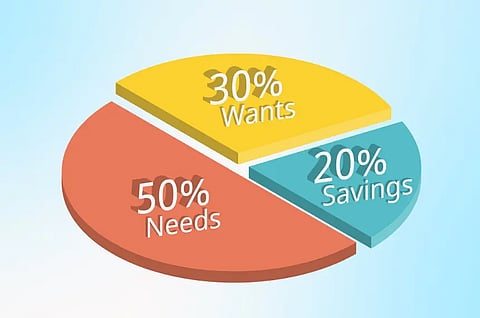 நிதி மேலாண்மைக்கு உலகம் முழுவதும் நிபுணர்களால் பரிந்துரைக்கப்படும் எளிய வழிமுறை 50/30/20 விதியாகும். இது உங்கள் மாத வருமானத்தை மூன்று பிரிவுகளாகப் பிரித்துச் செலவு செய்ய அறிவுறுத்துகிறது.
