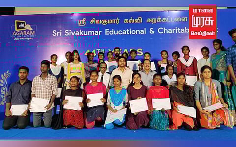 ஸ்ரீ சிவகுமார் கல்வி அறக்கட்டளையின் 44-வது விருது வழங்கும் விழா சென்னை வடபழனியில் நடைபெற்றது. இதில் நடிகர் சூர்யா, கார்த்தி மற்றும் சிவக்குமார் பங்கேற்றனர். தமிழ்நாட்டில் உள்ள 5 மாற்றுத்திறனாளி மாணவர்கள், 2 ஈழத்தமிழர் மாணவர்கள், பெற்றோர்களை இழந்த மற்றும் பெற்றோரில் ஒருவரை இழந்த மாணவர்கள் என 25 அரசுப்பள்ளி 12-ம் வகுப்பு முடித்த மாணவர்களுக்கு ஸ்ரீ சிவகுமார் கல்வி அறக்கட்டளையின் சார்பில் பாராட்டுச் சான்றிதழ் மற்றும் தலா ரூ.10,000 ஊக்கத்தொகை வழங்கப்பட்டது.