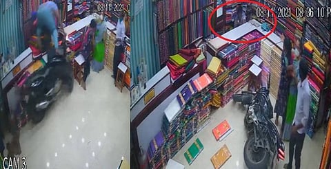 தெலுங்கானா மாநிலம் கம்மம் அருகே கடந்த 8 ஆம் தேதி பஜார் வீதியில் இருக்கும் துணி கடைக்குள் இளைஞர் ஒருவர் அதிவேகமாக ஓட்டி வந்த பைக் கட்டுப்பாட்டை இழந்து புகுந்தது.