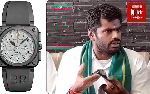 மூன்று மாதங்களுக்கு முன்பு ஒரு பேட்டியில் "நான் கட்டி இருக்கும் கடிகாரமானது ரபேல் விமானத்தைத் தயாரித்த நிறுவனம் அதன் உதிரி பாகங்களால் உருவாக்கியது. மொத்தமாக 500 கடிகாரங்கள் மட்டுமே உற்பத்தி செய்யப்பட்டன. அதில் 149வது கடிகாரத்தை நான் கட்டி இருக்கிறேன்" என தெரிவித்தார் பாஜக தலைவர் அண்ணாமலை. அவர் அதை வாங்கியதற்கான இரசீதையும் அதற்கான வருவாய் ஆதாரங்களையும் பொதுவெளியில் வெளியிடுமாறு பல்வேறு தரப்பினரும் கேள்வி எழுப்பினர். இதற்கு பதில் அளித்த அண்ணாமலை ஏப்ரல் 1ஆம் தேதி அதற்கான ஆதாரத்தை வழங்குவதாக தெரிவித்திருந்தார்.