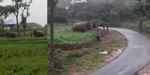 கர்நாடக மாநிலம் ராமநகர் மாவட்டம் சென்னப்பட்னா தாலுகா அருகே பெரியனஹள்ளி என்ற கிராமம் உள்ளது. இந்த கிராமத்திற்கு அருகில் உள்ள வனப்பகுதியில் இருந்து வெளியேறிய இரண்டு காட்டுயானைகள், அந்த கிராமத்திற்குள் புகுந்து அங்குள்ள விவசாய நிலங்களை சேதப்படுத்தி அட்டகாசம் செய்து வருகின்றன.