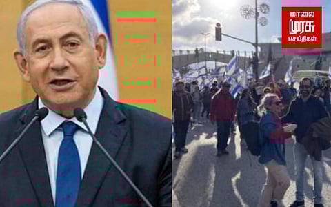 பிரதமா் நெதன்யாகு நிதித்துறையில் கொண்டு வரும் புதிய மாற்றத்திற்கான சட்டத்தை எதிா்த்து பொதுமக்கள் தொடர்ந்து தீவிர போராட்டத்தில் ஈடுபட்டு வருகின்றனர்.
