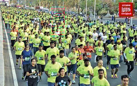 புற்றுநோய் குறித்து விழிப்புணர்வு ஏற்படுத்தும் வகையில் சென்னை, பெசண்ட் நகரில் உள்ள ஆல்காட் நினைவுப் பள்ளி அருகே தனியார் (காவேரி) மருத்துவமனை சார்பில் 10 கி.மீ மற்றும் 5 கி.மீ தூரத்திற்கு மாரத்தான் ஓட்டம் ஏற்பாடு செய்யப்பட்டிருந்தது.