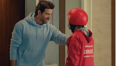 இந்த நிலையில் பாலிவுட் பிரபலங்களான ரித்திக் ரோஷன், கத்ரீனா கைஃப் ஆகியோரை வைத்து எடுக்கப்பட்ட ஜொமாட்டோ விளம்பரத்தை இணையத்தில் பலர் வசைபாடி வருகின்றனர். அதில் நடிகை கத்ரீனா தனது பிறந்தநாளுக்காக கேக் தருகிறேன் காத்திருங்கள் என கூறி செல்ல டெலிவரி பாயோ அடுத்த ஆர்டருக்கான அவசர ஒலி கேட்டு கிளம்பி விடுகிறார்.