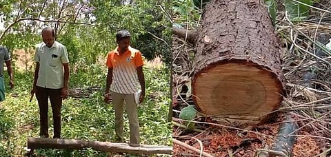 அதில் அவர்கள் கடந்த 16 ஆண்டுகளாக 97 சந்தன மரங்களை நட்டு வளர்த்து வந்தனர். இந்த மரங்கள் நட்டு 16 ஆண்டுகள் ஆவதாக கூறப்படுகிறது. இந்தநிலையில் நேற்று மாலை தர்மலிங்கத்தின் தாய் ராசம்மாள் அந்த தோட்டத்துக்கு சென்றார். அப்போது அங்கு 27 சந்தன மரங்கள் வெட்டப்பட்டு கடத்தப்பட்டிருந்ததை பார்த்து அதிர்ச்சி அடைந்தார். மேலும் சில சந்தன மரங்களில் அதை அறுத்ததற்கான அடையாளம் இருந்தது.