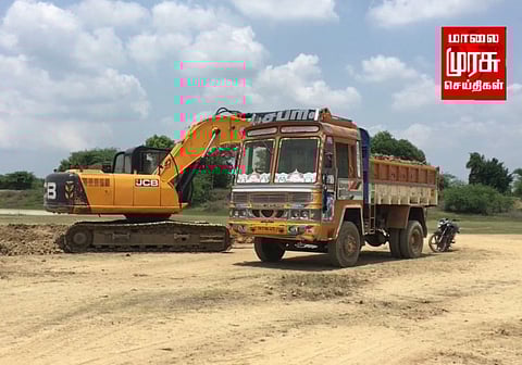 இந்நிலையில் அப்போது விவசாயிகள் மற்றும் பொதுமக்களுக்கு எந்த ஒரு முன்னறிவிப்பும் இன்றி பெரிய குளத்தில் மண் குவாரி அமைக்கப்பட்டு மண் கடத்தல் நடைபெற்று வருவதாக பெறப்பட்ட தகவலின் அடிப்படையில் இன்று அப்பகுதியை சேர்ந்த விவசாயிகள் மற்றும் பொதுமக்கள் பெரிய குளத்திற்கு சென்று மண் ஏற்றிச் சென்ற டிப்பர் லாரி மற்றும் ஜேசிபி இயந்திரத்தை சிறை பிடித்து போராட்டத்தில் ஈடுபட்டனர்.
