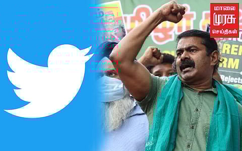 நாம் தமிழர் கட்சியின் ஒருங்கிணைப்பாளர் சீமான், இடும்பாவனம் கார்த்தி உள்ளிட்ட நாம் தமிழர் கட்சியை சேர்ந்தோர் மற்றும் மே 17 இயக்கத்தின் ஒருங்கிணைப்பாளர் திருமுருகன் காந்தி உள்ளிட்டோரது டிவிட்டர் கணக்குகள் நேற்று இந்தியாவில் முடக்கப்பட்டன. இதற்கு தமிழ்நாடு முதலமைச்சர் முக.ஸ்டாலின் உள்ளிட்டோர் கண்டனத்தை பதிவு செய்தி இருந்தனர்.