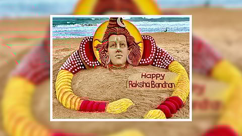 ரக்ஷா பந்தனையொட்டி பிரபல மணற்சிற்பக்கலைஞர் சுதர்சன் பட்நாயக் சிவன் கடவுள் உருவத்துடன் ராக்கி கயிறை வடிவமைத்துள்ளார். ஒடிசாவின் பூரி கடற்கரையில் மையத்தில் சிவன் கடவுள் உருவத்தை வடிவமைத்து 10 அடி நீளத்தில் மணல் ராக்கியை வடிவமைத்துள்ளார். இந்த ஆண்டின் ரக்ஷா பந்தன் சிவனுக்கு மிகவும் உகந்த சவன் மாதத்தின் இறுதி திங்கட்கிழமையில் வந்துள்ளதால் மிகவும் சிறப்பு வாய்ந்தது என்றும் அதனால் தான் சிவ உருவத்துடன் கூடிய ராக்கியை உருவாக்கியதாக சுதர்சன் பட்நாயக் தெரிவித்துள்ளார்.