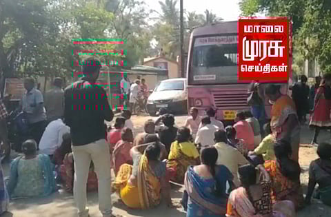 மேல கல்கண்டார் கோட்டை தட்டான் குளத்தில் கழிவு நீர் சுத்திகரிப்பு நிலையம் அமைக்கப்படுவதாக கூறப்படுகிறது. இதுகுறித்து அப்பகுதி மக்கள் மாநகராட்சி நிர்வாகத்திடம் குளத்தில் கழிவு நீர் சுத்திகரிப்பு நிலையம் அமைக்க கூடாது என மனு அளித்துள்ளனர். ஆனால் தற்போது வரை அந்த மனு மீது எந்த நடவடிக்கையும் எடுக்காததால் ஆத்திரமடைந்த கிராமமக்கள் அரசு பேருந்தை வழிமறித்து சாலை மறியலில் ஈடுபட்டனர்.
