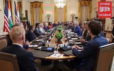 வாஷிங்டனில் அமெரிக்க வெளியுறவுத்துறை சார்பில் நேற்று வழங்கப்பட்ட மதிய விருந்தில் பிரதமர் மோடி கலந்து கொண்டார். அப்போது கடந்த ஒன்பது ஆண்டுகளாக இந்தியா - அமெரிக்கா நட்புறவால் ஏற்பட்ட சாதனைகளை பிரதமர் எடுத்துரைத்தார். இந்த பிரமாண்ட வரவேற்பிற்கு துணை அதிபர் கமலா ஹாரிஸ் மற்றும் வெளியுறவுத்துறை செயலாளர் ஆண்டனி பிளிங்கன் ஆகியோருக்கு நன்றி தெரிவித்தார். ஆர்ட்டெமிஸ் உடன்படிக்கையில் இந்தியா இணைய முடிவு செய்த நிலையில், பிரதமர் நரேந்திர மோடிக்கு கமலா ஹாரிஸ் நன்றி தெரிவித்துள்ளார்.