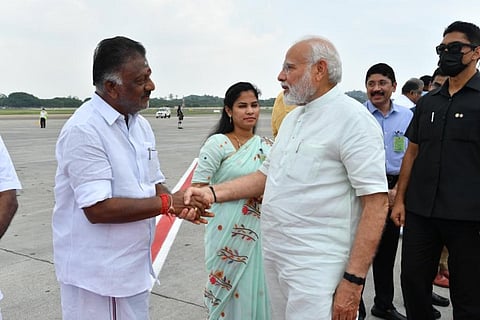பிரதமர் நரேந்திர மோடியை சென்னை விமான நிலையத்தில் வழி அனுப்பி வைக்க அதிமுக ஒருங்கிணைப்பாளர் ஓ.பன்னீர்செல்வம் வந்திருந்தார்.