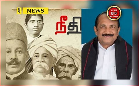 107 வது ஆண்டில் அடியெடுத்து வைத்த நீதிக்கட்சி குறித்து மதிமுக பொதுச்செயலாளர் வைகோ அறிக்கை வெளியிட்டுள்ளார்.