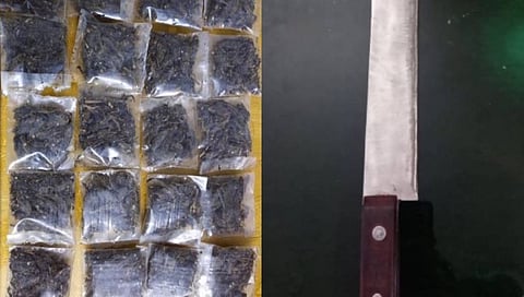 அப்போது ஓரு வீட்டில் பதுங்கி இருந்த கார்த்திக் என்கிற புறா கார்த்திக், அஜித், குட்டா என்கிற சதீஷ்குமார், தினேஷ் என்கிற மண்ட தினேஷ் மற்றும் 17 வயது சிறுவன் ஆகிய 5 பேரையும் கைது செய்து அவர்களிடம் இருந்த 20-க்கும் மேற்பட்ட கஞ்சா பொட்டலங்கள், பல்சர் வாகனம், பட்டாக்கத்தி உள்ளிட்டவைகளை பறிமுதல் செய்து காவல் நிலையத்தில் வைத்து விசாரித்தனர்