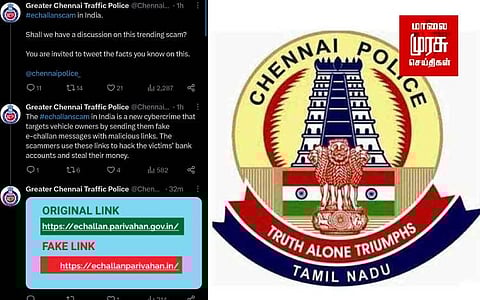 சென்னை போக்குவரத்து காவல் ஆணையம் தனது டிவிட்டர் பக்கங்களில் ஈ செல்லான் லிங்க் மூலம் மோசடி நடைபெறுவதை சுட்டிக்காட்டி மக்களை எச்சரித்து இருக்கிறது