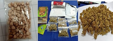 அதுப்போல் அமெரிக்காவில் இருந்து ஆந்திராவிற்கு வந்த பரிசு பார்சலில் 132 கிராம் உயர்ரக கஞ்சா இருந்தது. அதுப்போல் ஸ்பெயின் நாட்டில் இருந்து ஆந்திர மாநிலத்திற்கு வந்த பார்சலில் 10 கிராம் உயர் ரக கஞ்சா இருந்தது. 4 பார்சல்களில் இருந்து வந்த 131 கிராம் போதை மாத்திரைகள், பவுடர், 142 கிராம் எடைக் கொண்ட கஞ்சா ஆகியவற்றை சுங்கத்துறை அதிகாரிகள் பறிமுதல் செய்தனர்.