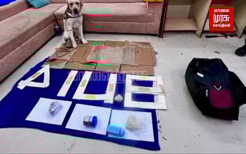 பின்னர் அவரை தனி அறைக்கு அழைத்துச் சென்றனர். அவருடைய உடைமைகளையும் வரவழைத்தனர். உடமைகளை சோதனை செய்ததில் போதைப்பொருட்கள், மற்றும் அபாயகரமான பொருட்கள் ஏதாவது உள்ளதா என்பதை அறிவதற்காக, சுங்கத்துறை அதிகாரிகள் மோப்ப நாய் மூலம் பரிசோதித்தனர்.