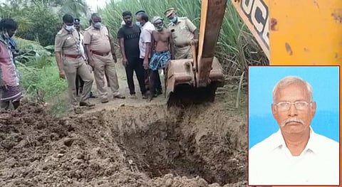 நாமக்கல் மாவட்டம் நாமகிரிப்பேட்டை பகுதியை சேர்ந்தவர் சுப்பிரமணி. 74 வயது முதியவரான இவருக்கு, சேலம் மாவட்டம் ஆத்தூர் அருகே உள்ள சிவகங்கைபுரம் என்ற கிராமத்தில் 7 ஏக்கர் சொந்த நிலம் உள்ளது. இந்த நிலத்தை, அதே பகுதியை சேர்ந்த சக்திவேல் என்பவர் ஒரு கோடியே இருபது லட்சம் ரூபாய்க்கு விலை பேசி வாங்கியதாக கூறப்படுகிறது. இந்த நிகழ்விற்கு பிறகு சுப்பிரமணியை காணவில்லை என கூறப்படுகிறது. இந்நிலையில் இதுகுறித்து சுப்பிரமணியின் உறவினரான கனகம் என்பவர் அளித்த புகாரின்பேரில் வழக்குப்பதிவு செய்த போலீசார், அவரை தேடிவந்தனர்.