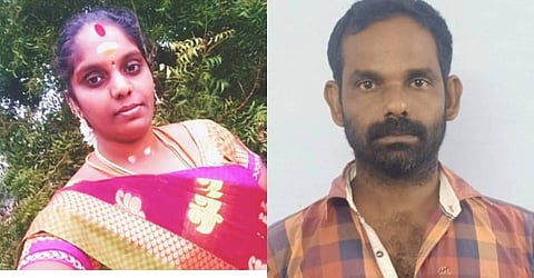 தேனி மாவட்டம், உத்தமபாளையம் அருகே உள்ள ராயப்பன்பட்டி காளியம்மன் கோவில் தெருவை சேர்ந்தவர் கல்யாணகுமார். அவர் கட்டிட தொழிலாளியாக வேலை செய்து வருகின்றார். அவருடைய மனைவி ரஞ்சிதா, இவர்களுக்கு 8 வயதில் மகள் உள்ள நிலையில் திடீரென ரஞ்சிதா இறந்து விட்டதாக கூறி அவரது கணவரும், ரஞ்சிதாவின் தாய் கவிதாவும் சேர்ந்து எரித்துள்ளனர். இதுகுறித்து தகவலறிந்து வந்த காவல்துறையினர் பாதி எரிந்த நிலையில் சடலத்தை கைப்பற்றி பிரேத பரிசோதனைக்கு அனுப்பி வைத்தனர். காவல்துறையினர் விசாரணையில், ரஞ்சிதாவின் தாயும் கணவனும் சேர்ந்து கழுத்தை நெரித்து கொன்றது உறுதியானது.