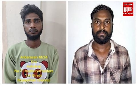 அவர்களிடமிருந்து 1.275 கிலோ கஞ்சாவும் பறிமுதல் செய்யப்பட்டுள்ளது. விசாரணையில் வினோத் மீது கஞ்சா வழக்கு ஒன்றும், அன்பரசு மீது திருட்டு, வழிப்பறி உள்ளிட்ட 12 வழக்குகளும் நிலுவையில் உள்ளது தெரியவந்தது. பின்னர் கைது செய்யப்பட்ட இருவரும் நீதிமன்றத்தில் ஆஜர்படுத்தப்பட்டு சிறையில் அடைக்கப்பட்டனர்.