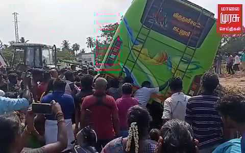கடலூரில் தனியார் பேருந்து ஒன்று அடுத்தடுத்து இரண்டு வாகனத்தின் மீது மோதியதால் 3 பேர் பலியாகியுள்ளனர். மேலும் 30க்கும் மேற்பட்டோர் படுகாயமடைந்துள்ளனர்.