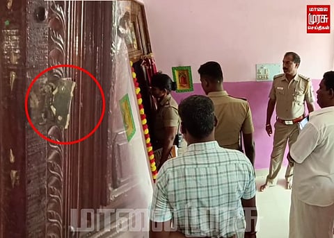 இன்று காலை மேல் வீட்டில் இருந்து கீழே இறங்கி வந்து பார்த்த பொழுது கீழ் வீட்டில் முன்பக்க கதவுகள் உடைக்கப்பட்டு இருப்பதை கண்டு மகேந்திரன் மற்றும் அவரது மனைவி தனலட்சுமி ஆகிய இருவரும் அதிர்ச்சி அடைந்துள்ளனர்.