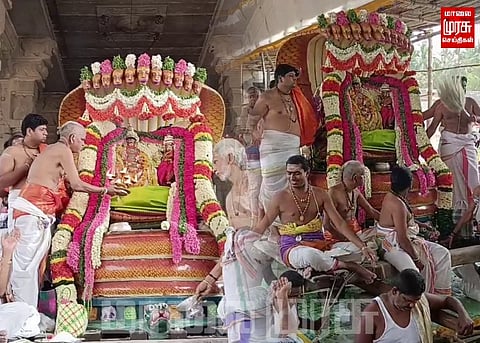 காஞ்சிபுரம் | பஞ்ச பூத ஸ்தலங்களில் பிருத்வி எனும் மண் (பூமி) ஸ்தலமாக விளங்கும் 3000 ஆண்டுகள் பழமையான, உலகப் பிரசித்தி பெற்ற காஞ்சிபுரம் அருள்மிகு ஏகாம்பரநாதர் திருக்கோவிலில் பங்குனி உத்திர திருக்கல்யாண பெருவிழா உற்சவம் நாள்தோறும் வெகு விமர்சையாக நடைபெற்று வருகிறது.