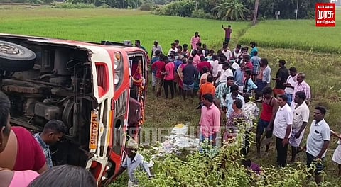 திருவண்ணாமலை | வந்தவாசி அடுத்த திரை கோவில் கிராமத்தில் சாலையில் சென்று கொண்டிருந்த தனியார் பேருந்து சாலை ஓரத்தில் விவசாய நிலத்தில் திடீரென கவிழ்ந்து விபத்துக்குள்ளானதில் 27 பேர் படுகாயம் அடைந்து வந்தவாசி அரசு மருத்துவமனையில் சிகிச்சை பெற்று வருகின்றனர்.