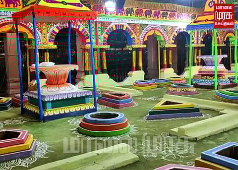முன்னதாக பாரவேல் மண்டபத்தில் அலங்கரிக்கப்பட்ட இறை திருக்குடங்களில் மூலவர் அருட்சக்தியை திருக்குடங்களில் எழுந்தருள செய்து உட்பிரகாரம் மேளதாளம் முழங்க உலா வர செய்யப்பட்டது.