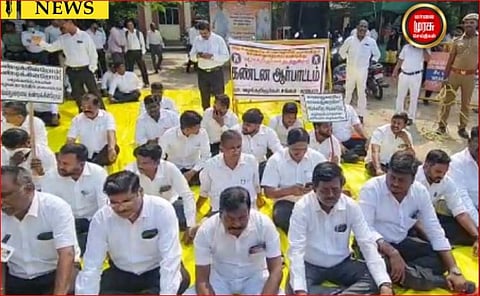 தாம்பரம் நீதிமன்றம் வளாகம் நுழைவாயிலில் வழக்கறிஞர்களை ஒருமையில் பேசும் போலீசாரை கண்டித்து வழக்கறிஞர்கள் கண்டன ஆர்ப்பாட்டம் நடத்தி வருகின்றனர்.