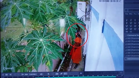 இந்நிலையில் வேல் குமார் வீட்டின் அருகில் மர்ம நபர் ஒருவர் இருப்பதாக எதிர் வீட்டில் வசிக்கும் பாபு என்பவர் வேல் குமாருக்கு தகவல் தெரிவித்துள்ளார். இதனையடுத்து வீட்டிற்கு விரைந்து வந்த வேல் குமார் வீட்டிலிருந்த கண்காணிப்பு கேமராக்களை ஆய்வு செய்தபோது, காலை 9:30 மணிக்கு வீட்டின் மதில் சுவர் மீது அடையாளம் தெரியாத முகமூடி அணிந்து பெண் உருவத்தில் புடவை அணிந்த நபர் உள்ளே வந்து வெளியே ஓடும் காட்சிகள் பதிவாகி இருப்பதைக் கண்டு அதிர்ச்சி அடைந்தார்.