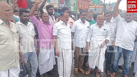 சிதம்பரம் அருகே புவனகிரியில் திமுகவினர் போராட்டம். பாஜக மாநில தலைவர் அண்ணாமலையின் உருவ பொம்மையை எரித்து திமுகவினர் போராட்டத்தில் ஈடுபட்டனர்.