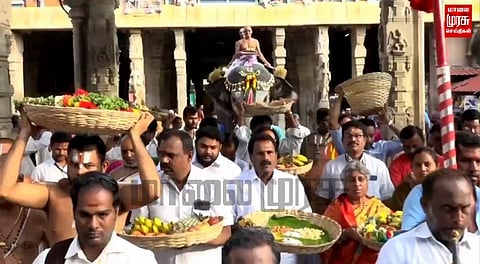 அதன்படி கைசிக ஏகாதசியை முன்னிட்டு திருமலை திருப்பதி தேவஸ்தானத்திலிருந்து ஸ்ரீரங்கம் அரங்கநாதசுவாமிக்கும், உற்சவர் நம்பெருமாளுக்கு பட்டு வஸ்திரங்கள் மற்றும் அரங்கநாயகி தாயாருக்கு பட்டு புடவைகள் மாலை மற்றும் மங்களப் பொருட்கள் கொண்டு வந்திருந்தனர்.