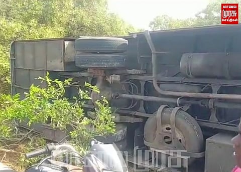 திருமணம் முடிந்தவுடன் மீண்டும் கார்குடல் கிராமத்தை நோக்கி தேவனூர் வழியாக சென்று கொண்டிருந்தனர். அப்போது தேவனூர் வளைவில் திரும்பும் போது பேருந்து கட்டுப்பாட்டை இழந்து சாலையின் ஓரத்தில் இருந்த பள்ளத்தில் கவிழ்ந்ததில் பேருந்தில் பயணம் செய்த 40-க்கும் மேற்பட்டோர் காயம் அடைந்தனர்.
