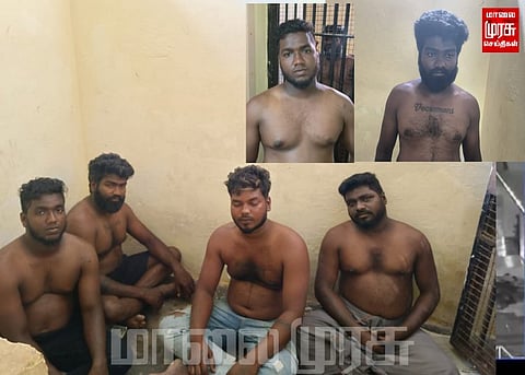 இந்த நிலையில் எரும்புக்கண்ணியைச் சேர்ந்த புகழேந்திரன், பட்டமங்கலத்தைச் சேர்ந்த அஜித் உள்பட நான்கு பேரை கைது செய்து செய்தனர். அவர்களிடம் போலீசார் தீவிர விசாரணை மேற்க்கொண்டு வருகின்றனர்.
