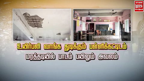25 ஆண்டுகளுக்கு முன்பு கட்டப்பட்ட பள்ளிக்கூட கட்டிடம் கஜா புயலின் போது சேதமைடந்த நிலையில் அதிகாரிகள் கண் துடைப்புக்கு மட்டுமே சீரமைப்பு பணியை செய்ததாக கூறப்படுகிறது. அப்போது முதல் பள்ளியின் மேற்கூரை இடிந்து விழுவது வாடிக்கையாக இருந்து வருகிறது.