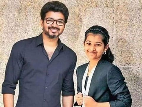 அவருக்கு ஜேசன் சஞ்சய் என்ற மகனும் திவ்யா என்ற மகளும் உள்ளனர் . தற்போது விஜய்யின் மகளான திவ்யா தன்னுடன் படிக்கும் மற்ற மாணவர்களுடன் எடுத்துக்கொண்ட புகைப்படம் இணையத்தில் வைரலாக பரவி வருகிறது.