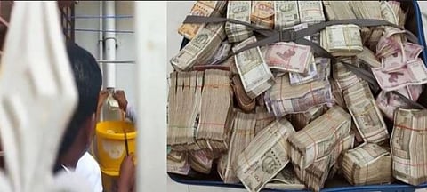 கர்நாடகாவில் லஞ்சமாக வாங்கிய பணத்தை பொதுப்பணித்துறை அதிகாரி தண்ணீர் பைப்புக்குள் பதுக்கி வைத்திருந்த சம்பவம் அரங்கேறியுள்ளது. ஊழல் குற்றச்சாட்டுக்கு உள்ளான அரசு அதிகாரிகள் மீது அம்மாநில லஞ்ச ஒழிப்புத் துறை அதிகாரிகள் அதிரடி சோதனையில் ஈடுபட்டனர். சோதனையின் ஒரு பகுதியாக கல்புர்கி மாவட்டத்தில் உள்ள பொதுப்பணித்துறை இணை பொறியாளர் சாந்த கவுடா என்பவரது வீட்டில் அதிகாரிகள் சோதனையிட்டுள்ளனர். அப்போது தண்ணீர் பைப்பை திறந்த போது அதில் தண்ணீர் வராததால் சந்தேகம் அடைந்த அதிகாரிகள் பிளம்பரை வரவழைத்து தண்ணீர் பைப்பை சோதனையிட்டுள்ளனர். அப்போது பைப்பில் தண்ணீர் கொட்டுவது போல் பணம் கொட்டியுள்ளது. இதை கண்டு அதிர்ச்சியடைந்த அதிகாரிகள் சுமார் 25 லட்சம் பணத்தை தண்ணீர் பிடிக்கும் பக்கெட்டை வைத்து பிடித்துள்ளனர். இது குறித்து சாந்த கவுடா-விடம் அதிகாரிகள் விசாரணை மேற்கொண்டு வருகின்றனர்.