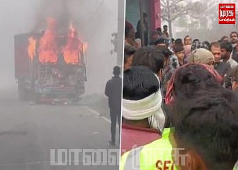 இதில் சம்பவ இடத்திலேயே அவர் உயிரிழந்த நிலையில், மாணவியின் உடலை நெடுஞ்சாலையில் வைத்து உறவினர்கள் போராட்டத்தில் ஈடுபட்டனர். தொடர்ந்து மாணவி மீது மோதிய லாரிக்கு தீ வைக்கப்பட்டதால் அங்கு பெரும் பதற்றம் நிலவி வருகிறது.